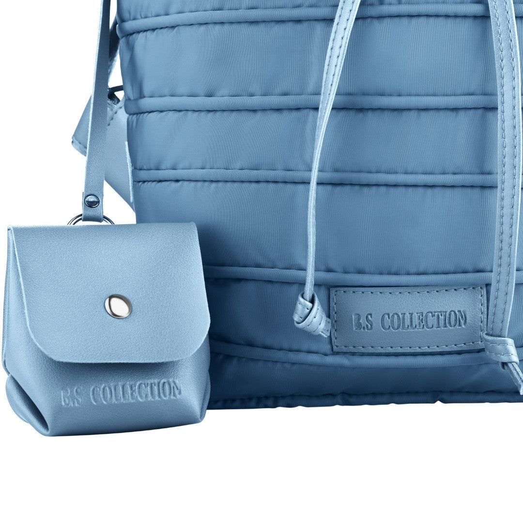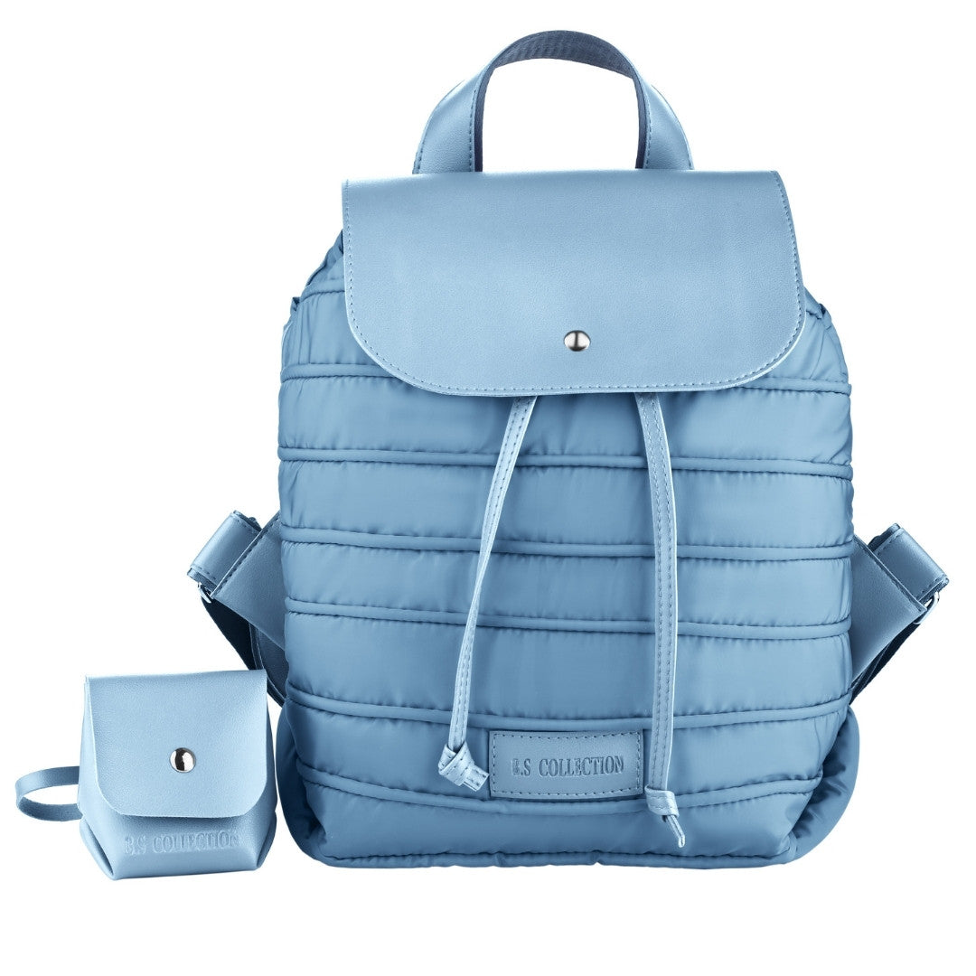 Backpack in Soft Fabric Waterproof Quilted Design Babyblue