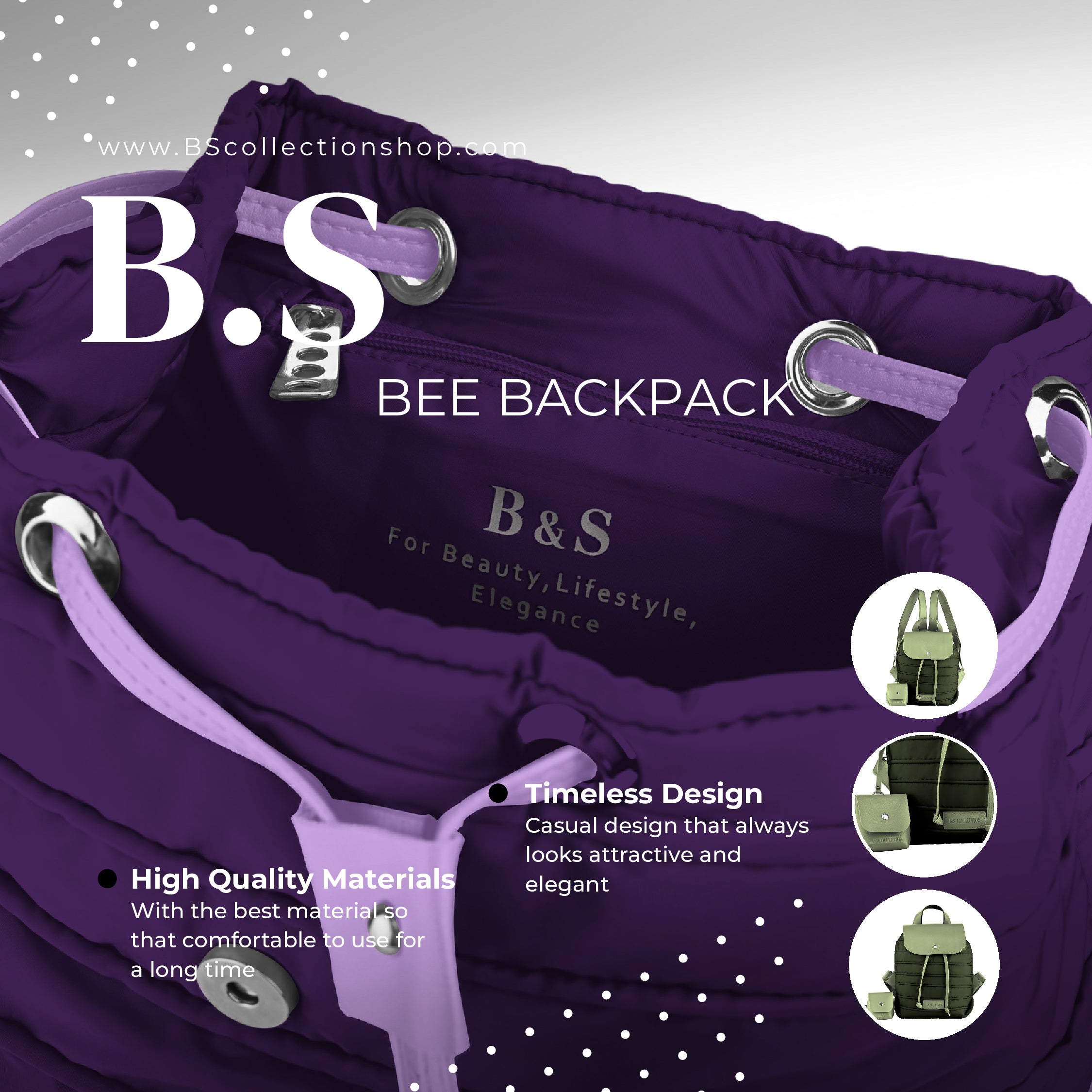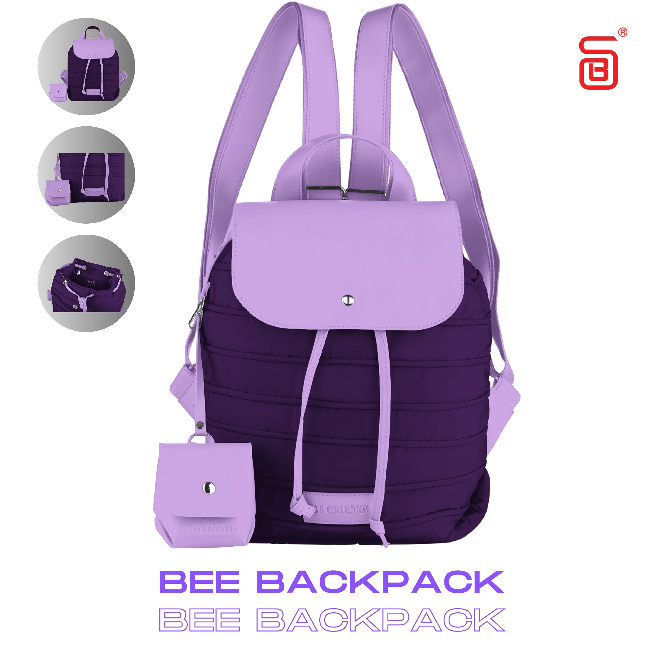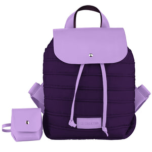 Backpack in Soft Fabric Waterproof Quilted Design Purple