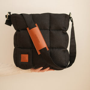 - Secure full-zip closure in the same color, complemented by a jacquard handle with a standard height of 40 cm from the bag’s body. It also features a leather-padded shoulder strap for maximum comfort.