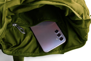 - It consists of a large, waterproof main storage space on the inside with a depth of 31 cm, with two internal pockets 20 cm * 15 cm, one of which closes with a full zipper.