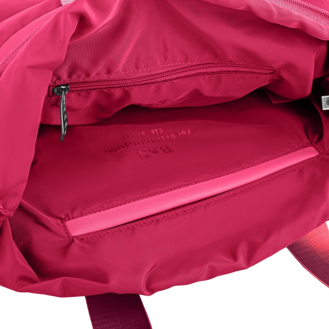 - It consists of a large, waterproof main storage space on the inside, 29 cm deep, with two internal pockets, 20 cm * 15 cm, one of which closes with a full zipper.