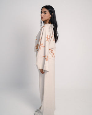 Oversized Linen Set with Leaf Embroidery - Orang Shirt & Plain Pants