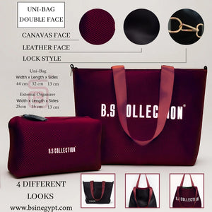 Uni-bag Tote Bag for Women in Double-Face Leather and Fabric Lightweight, Elegant & Practical for Work and University - Burgundy