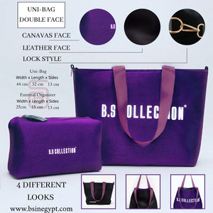 Uni-bag Tote Bag for Women in Double-Face Leather and Fabric Lightweight, Elegant & Practical for Work and University - Purple